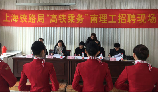 3月9日,上海铁路局高铁乘务员南京理工大学专场招聘会在我校艺文馆举行,我院国际空乘班2017届152名同学报名参加面试。