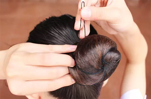 这个发型我们礼仪课上学了一个上午,可我现在还是扎不好,扎高了帽子又带不了…最多要插十多个夹子才能扎稳,还要喷发胶,因为不能有碎发。