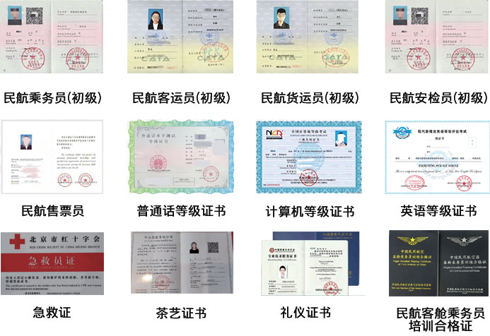 可根据所学专业,参加相关部门或行业组织的考试,成绩合格,可取得相应的职业资格证书。如:公共英语三级、普通话等级证书、安检证书、民航客运证书、急救证、礼仪证书、茶艺证书、民航客舱乘务员培训合格证等。